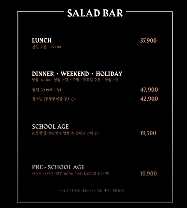 타 매장의 가격도 모두 동일합니다. 아래에서 빕스 샐러드 바 가격을 확인하세요!
