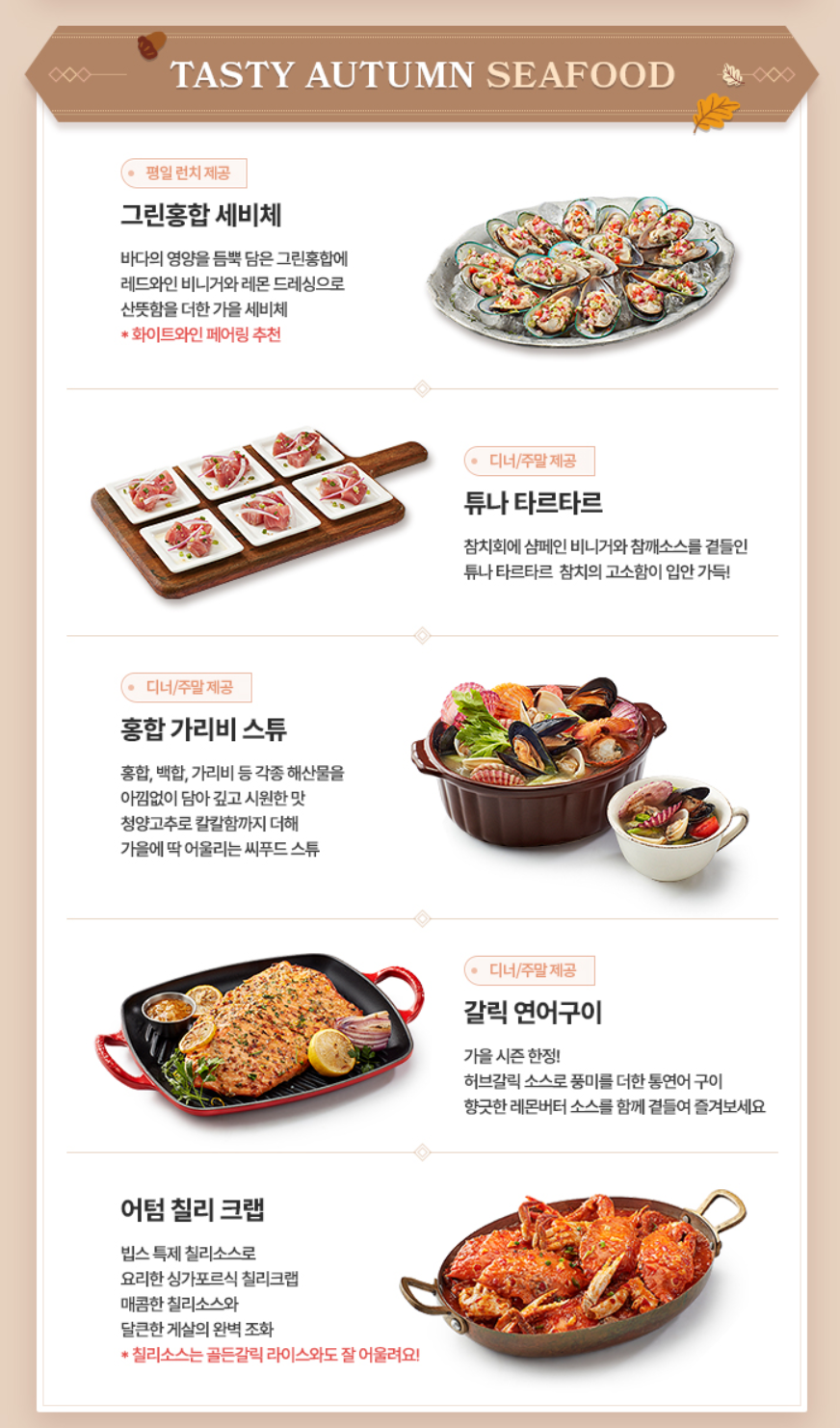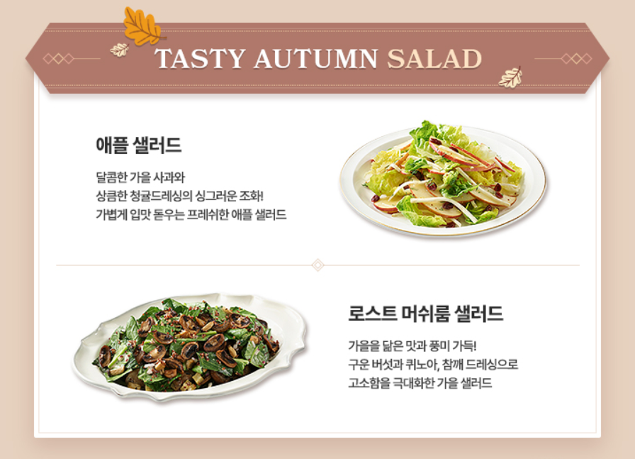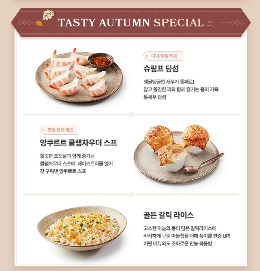 가을과 어울리는 계절메뉴가 특색있습니다!