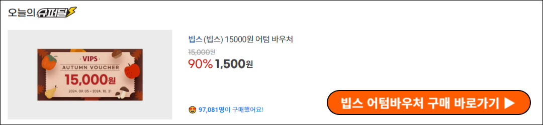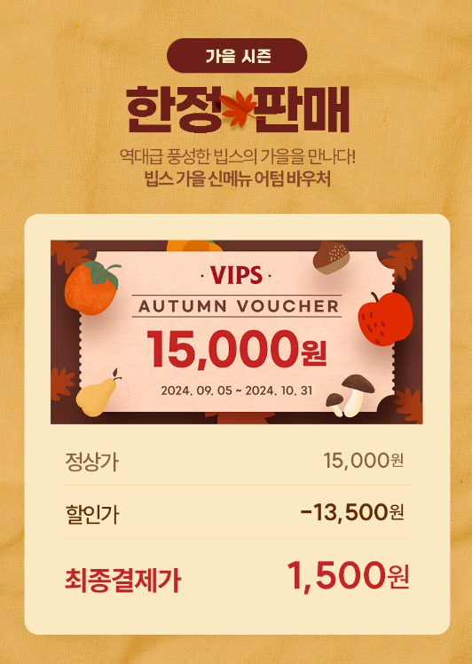 빕스 어텀 바우처는 9월 15일까지만 판매되오니 서두르시기 바랍니다!!