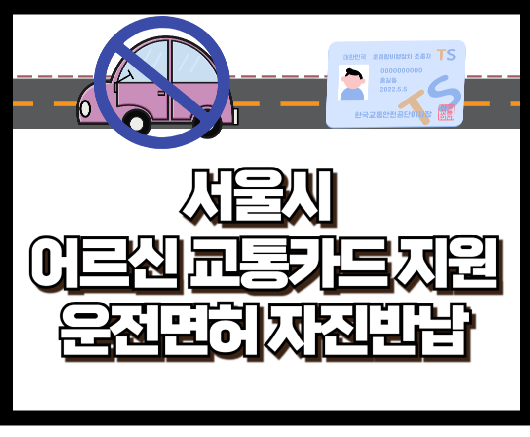 서울시에서는 운전면허를 자진반납하는 70세 이상 어르신분들에게 10만원이 충전된 교통카드를 지원합니다.