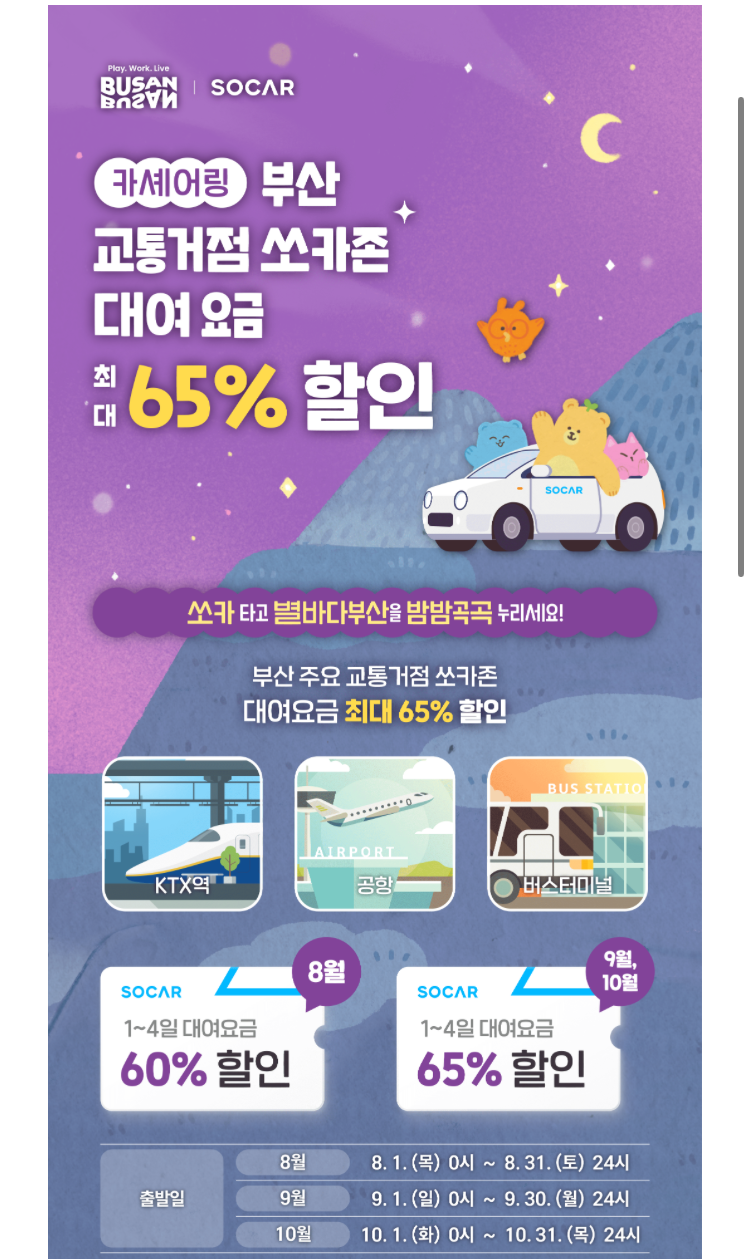 현재 숙박과 KTX 와 연계된 할인혜택이 있으니 이용계획이 있으시다면, 반드시 이 혜택과 함께 쏘카를 이용해보시는걸 추천드립니다!!