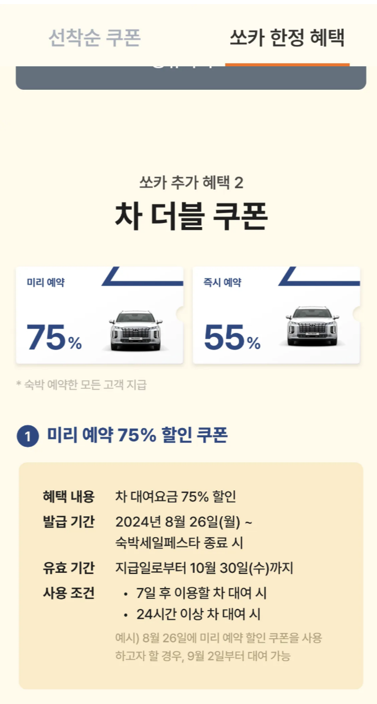 적용을 받아 좀 더 저렴한 가격으로 쏘카를 이용하실 수 있습니다.