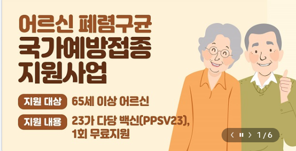 어르신들도 나이가 듦에 따라 면역력저하 등으로 예방접종을 시기에 잘 맞춰 하시는 것이 중요합니다.