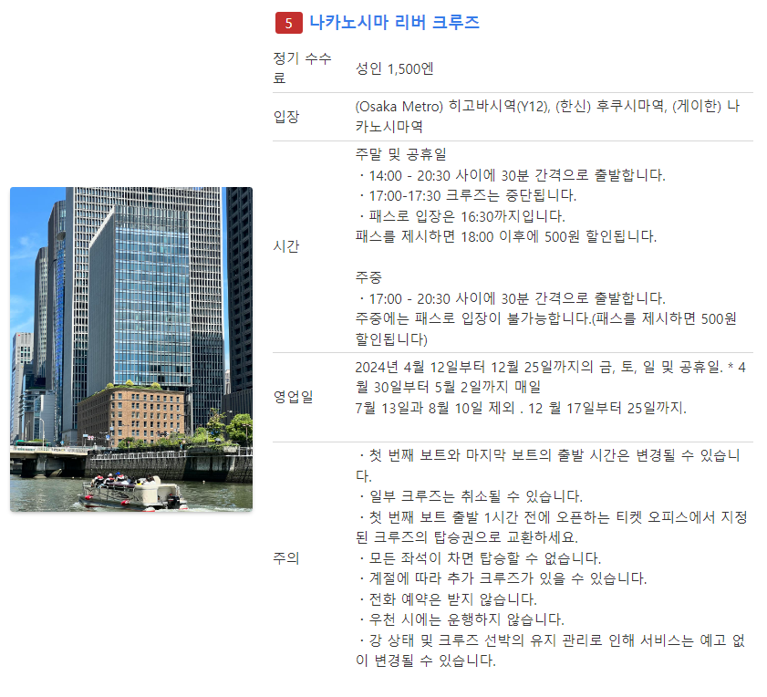 오사카의 수상버스부터 우메다 스카이빌딩 등 관광명소에 입장 할 수 있는데요.