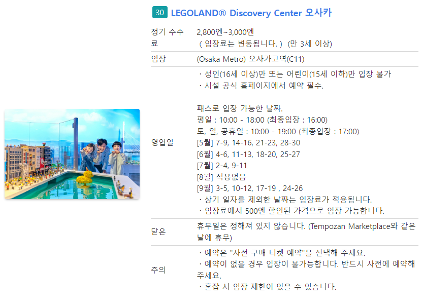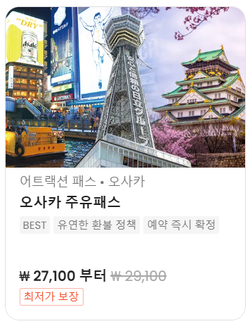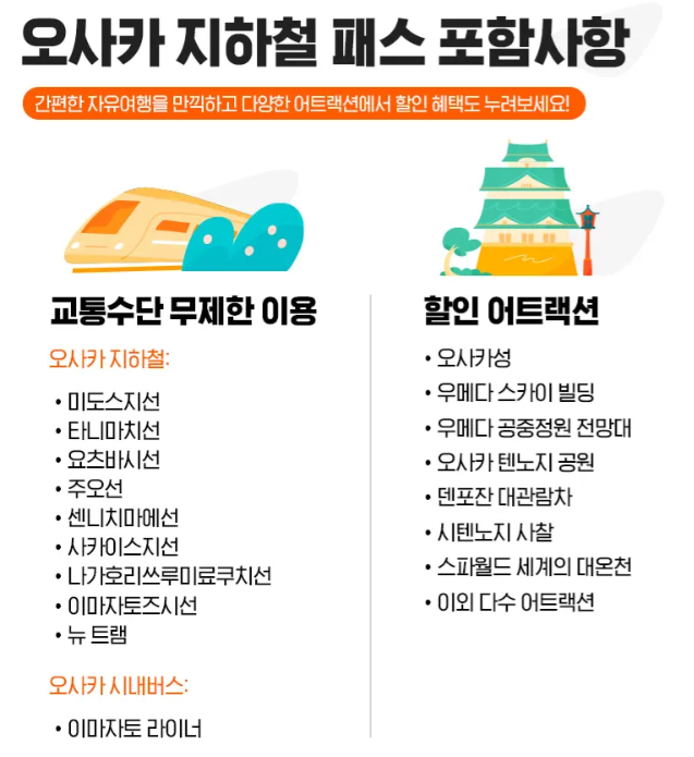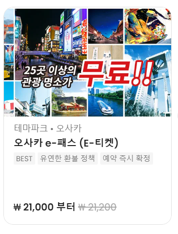 - 오사카 e패스 : 시설 무료입장 , 지하철패스 옵션으로 추가구입