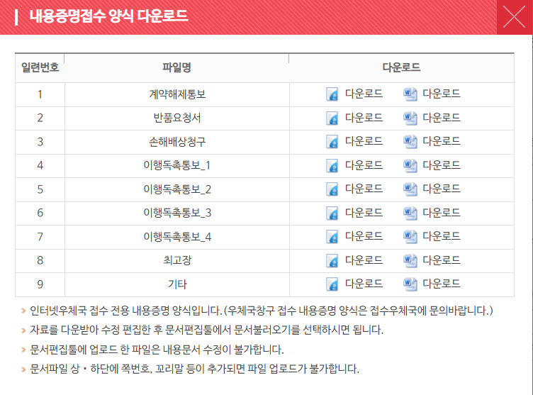홈페이지에서 내용증명문서 양식을 다운받아 사용하실 수 있습니다.