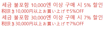 만엔 이상 구매시부터 5% 혹은 7% 할인을 추가로 받을 수 있습니다.
