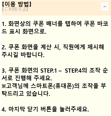 최대 15% 할인을 받을 수 있는 이 쿠폰은 관광객만 사용 가능합니다.