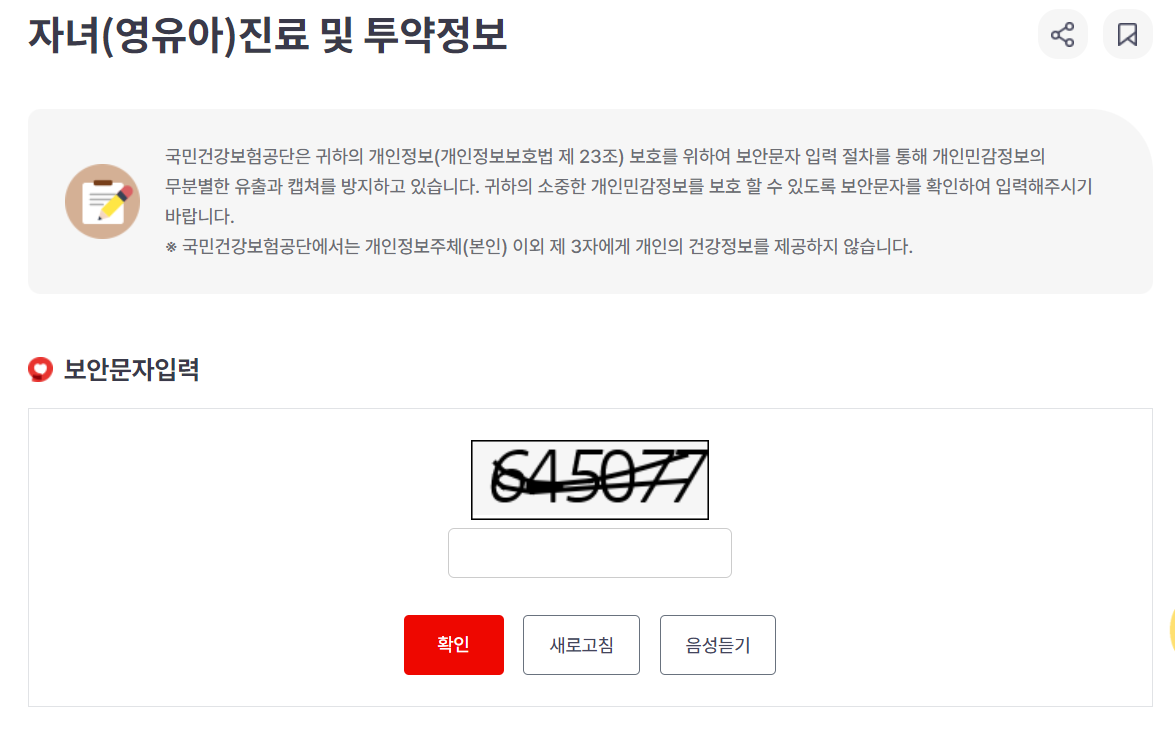 이럴때, 건강보험공단 홈페이지에서 자녀의 병원 처방전 내역을 조회해보실 수 있습니다.