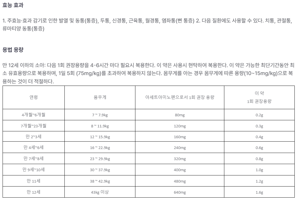 약의 성분을 눌러보시면 약의 효능효과, 복용량 등에 대한 정보도 얻으실 수 있으니,