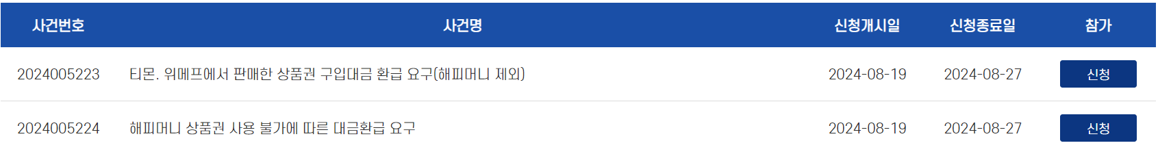 현재 상품권과 관련된 추가 집단분쟁조정 신청자를 모집하고 있습니다.