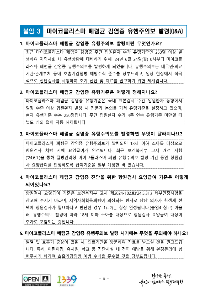 질병관리청이 백일해 예벙잡정과 마이코플라스마 폐렴균 감염증에 대한 유행주의보를 낸 상황이니