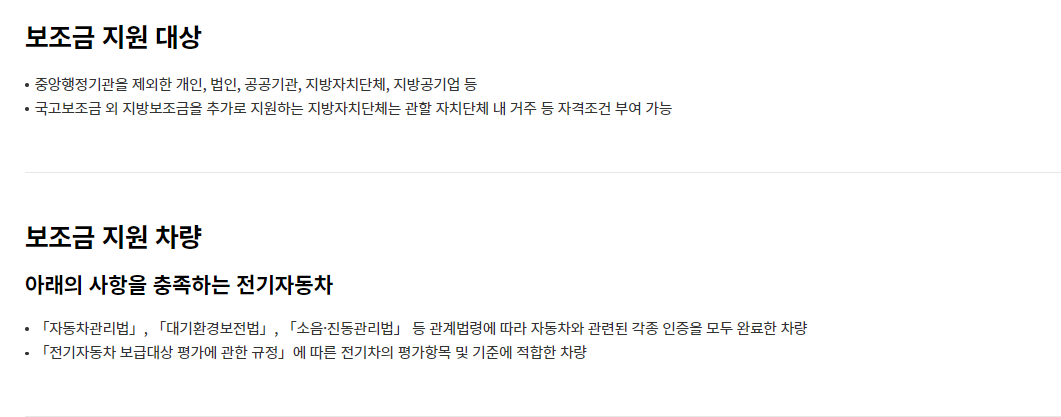 전기차 보조금 지급 조건