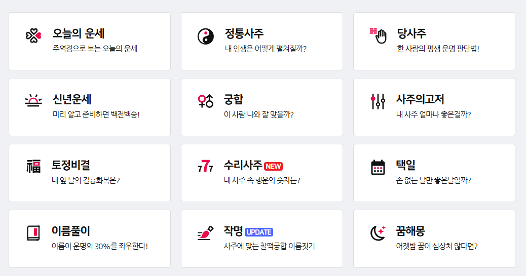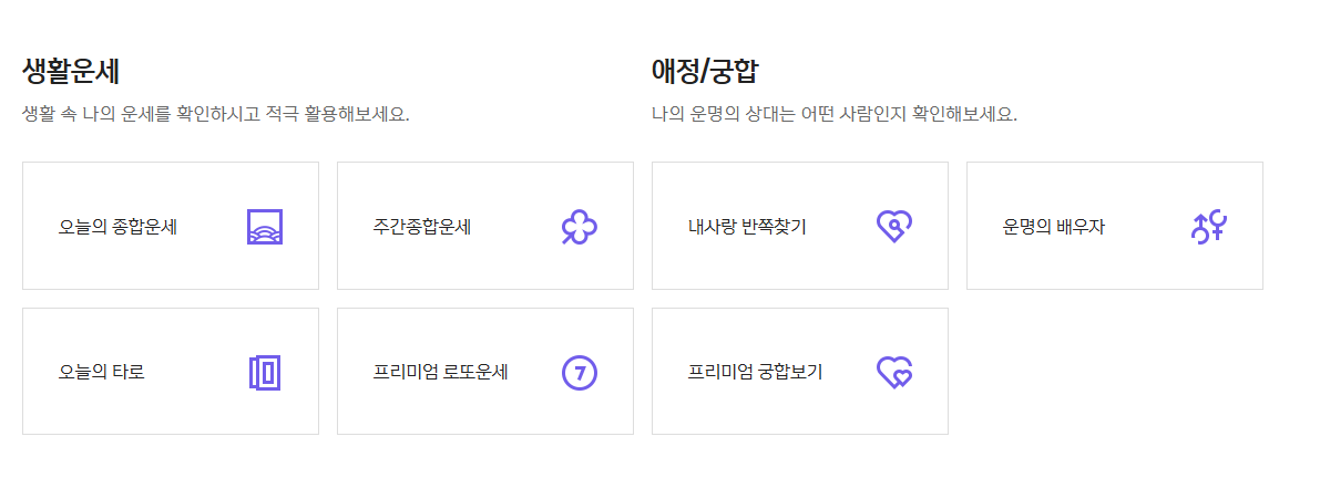다양한 테마별 운세를 제공합니다.